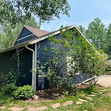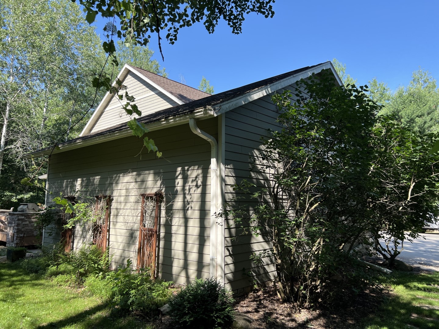 Removed and replaced original fiber cement siding with LP Smartside Diamond Kote Pre-Finish siding on the house & detached garage in the color Midnight in Amherst Junction, WI. LP Smartside with Diamond Kote Pre-Finish shake siding was installed on the front house and garage peaks. Diamond Kote leads the industry as the #1 brand of pre-finished LP Smartside. The siding has a no fade warranty and is low maintenance resisting the build up of dirt and grime while locking out moisture.