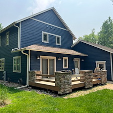 LP Smartside with Diamond Kote Pre-Finish window & door trim with nail fin was installed in a butt and pass style. Removed existing garage door frames and installed Titan Clad garage door frames with weatherstripping & drip cap flashing.